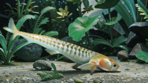 美しき熱帯魚『クテノポマアンソルギー』の意外な美しさは、鮮やかな色合いと独特の形状にあります。この魚は通常、暗褐色またはオリーブ色をしていますが、興奮したり求愛したりすると、見事な赤、黄、青の色彩を帯びます。さらに、背びれには印象的な孔雀のような斑紋があり、まるで孔雀の尾のように羽ばたきます。このコントラストの強い 色彩と動きの組み合わせが、クテノポマアンソルギーを一際目を引く美しさにしています。