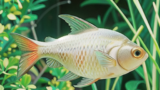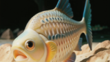 ダイヤモンドテトラの特徴は、そのキラキラと輝く鱗にあります。この鱗は青みがかった銀色で、光が当たるとダイヤモンドのように反射します。その美しさから、この魚は「ダイヤモンド」という名前が付けられました。また、ダイヤモンドテトラは比較的群れをなす傾向があり、20匹以上の群れで泳ぐこともあります。体長は約3~4.5cmと小型ですが、水槽内では目立つ存在になるでしょう。