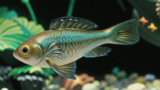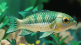 トリカラーブラッシングエンゼルは、白、黄、黒のコントラストが織りなす見事な芸術作品です。この鮮やかな色彩に加えて、この種のもう一つの特徴的な点は、透明なエラです。このエラは、まるで幽霊のようにほのかに透けており、この魚に神秘的な雰囲気を与えます。透明なエラは、水中での呼吸を効率的に行うのに役立ちますが、同時に、この魚を他の種とは一線を画すユニークな存在にしています。