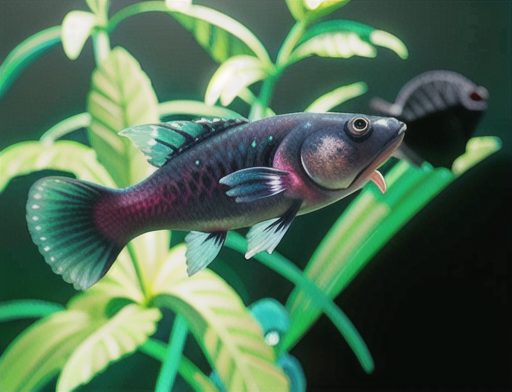 ブラックモーリーは、その名の通り、真黒な体色を特徴とする熱帯魚です。鱗一枚一枚が真っ黒く覆われており、光沢のある漆黒のボディが目を引きます。他のモーリー同様に尾びれが大きく、泳ぐときは悠々と尾びれを広げ、優雅な姿を見せます。また、ブラックモーリーの瞳は黒く輝き、鋭い眼差しをしています。群れで泳ぐ姿は、まるで黒い宝石が水中を駆け巡っているかのようであり、アクアリウムにひときわの存在感をもたらしてくれます。