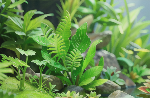 流木に活着させればレイアウト自在! ミクロソリウムプテロプスは、流木に活着させてレイアウトを自在に組み上げるのに最適です。丈夫な性質のため活着作業も簡単で、水流のある環境でも安定して成長します。流木に沿って活着させれば、自然な雰囲気が演出でき、水槽の景観がぐっと引き締まります。また、レイアウト変更が容易なため、水槽の成長や好みに合わせて調整することが可能です。