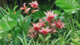 ロタラマクランドラ(斑入り)は、その特徴的な葉脈と鮮やかな赤色で知られる、シダ植物です。葉脈は非常に目立ち、葉の中央から放射状に広がっています。この独特の葉脈は、他のシダ植物と区別する特徴的な一因となっています。