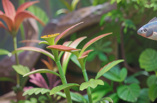 他の水草に比べてゆっくりと成長するという意味です。小型から中型水槽では、ワンポイントとして適しています。